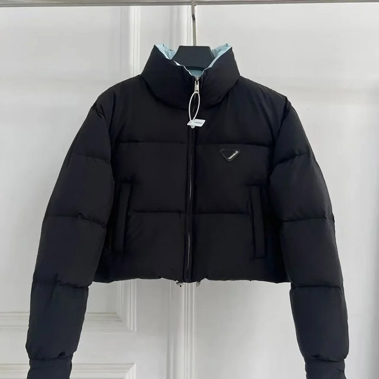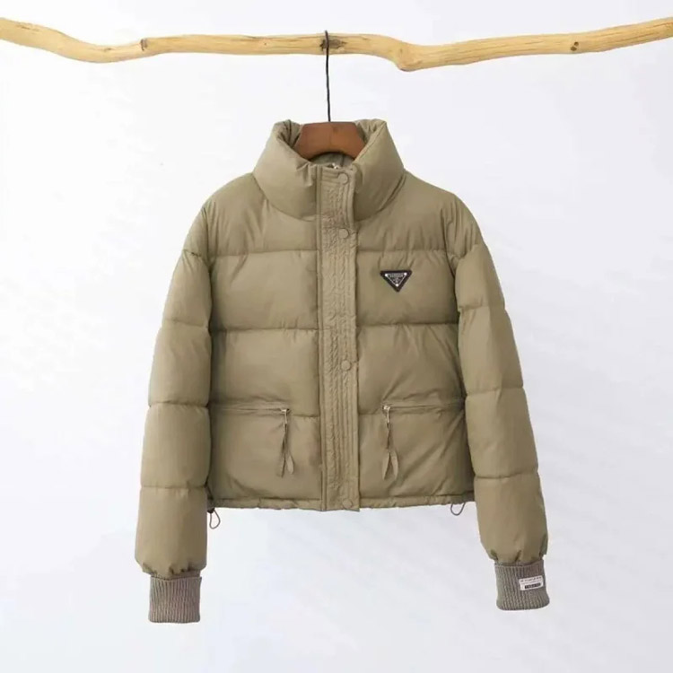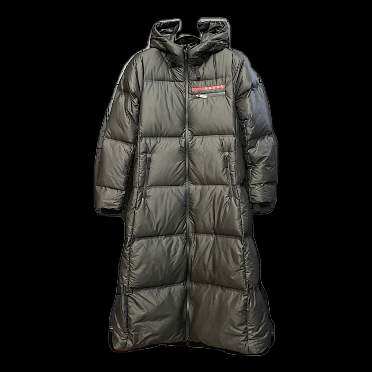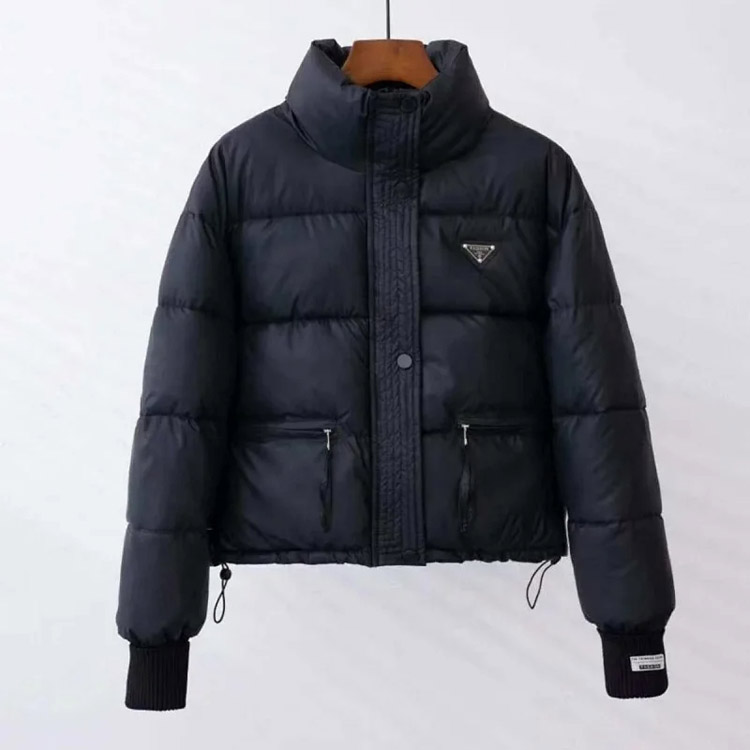 PRADA Prada Logo Badge Lapel Zipper Long Sleeve Down Jacket-4285