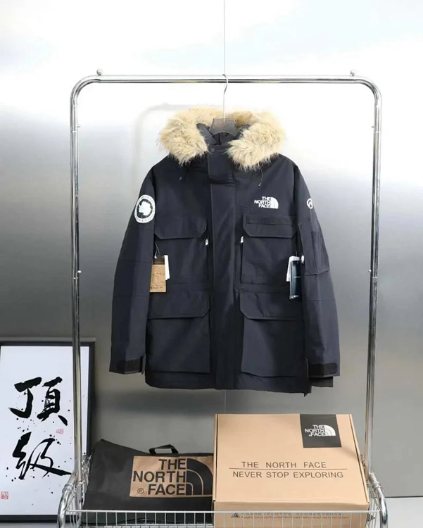 THE NORTH FACE solid color logo logo multi-pocket drawstring hooded cotton jacket-4274